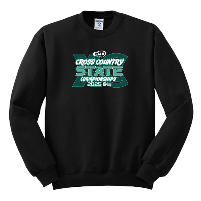 Crewneck Sweatshirt – WIAA 2025 State Cross Country – Black
